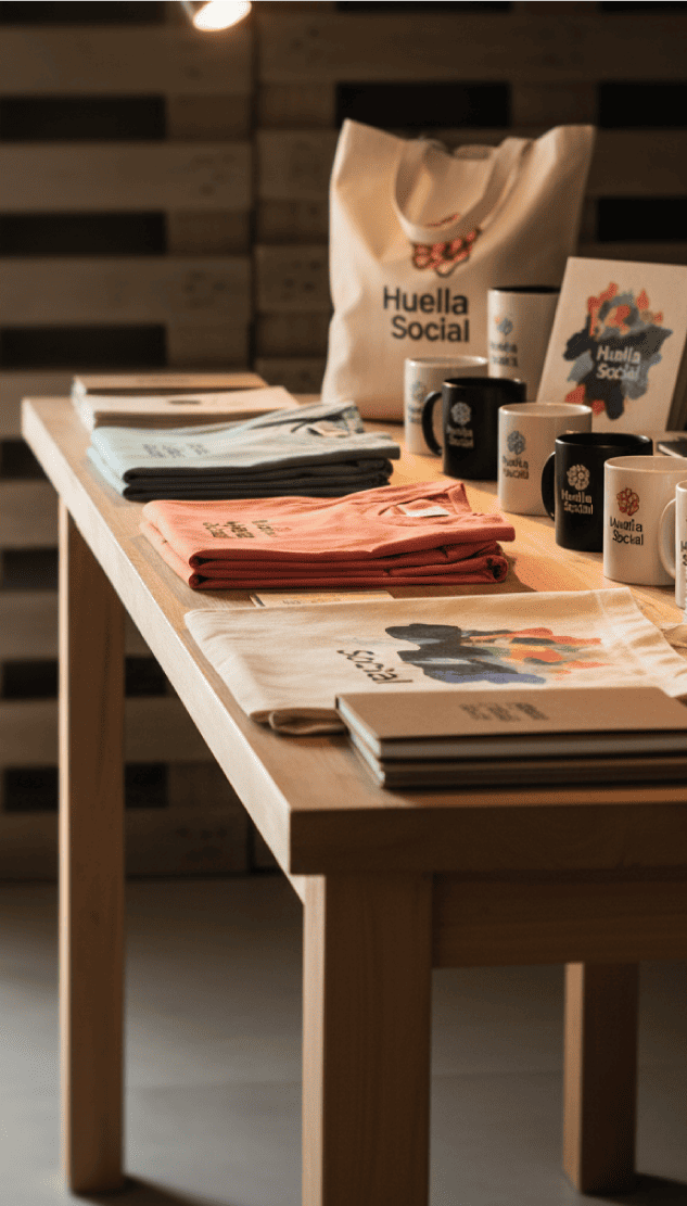 Uniformes, tote bags y merchandising con valores. Producción ética y acabados premium en talleres inclusivos.